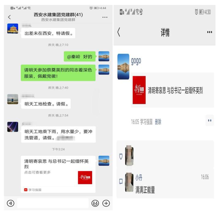 縷縷春風,綿綿細雨,說不及對革命烈士的無限深情,道不盡對烈士英魂的無盡哀思。在黨支部書記的宣傳呼吁下,公司職工紛紛參與了學習強國平臺關(guān)于“清明寄哀思 與總書記一起緬懷英烈”的微信轉(zhuǎn)發(fā)活動,并在黨建學習群進行了宣傳轉(zhuǎn)發(fā),自覺放平手機,為英烈默哀一分鐘。